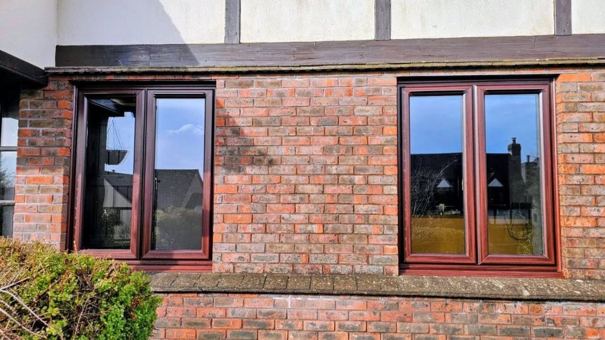 A new installation of Rosewood uPVC casement windows with no horizontal bars for uninterrupted sight lines and a clearer, more open view.